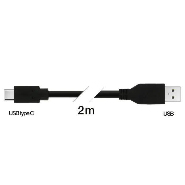 USB Type C v USB 2m kabel za polnjenje/sinhronizacijo za pametne telefone in tablične računalnike črne barve