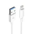 Bel kabel USB-A v Lightning za varno polnjenje in hiter prenos podatkov. Ima odporen dizajn in ima dolžino 1,5 m. Združljivo z napravami, opremljenimi s prikljuckom Lightning.