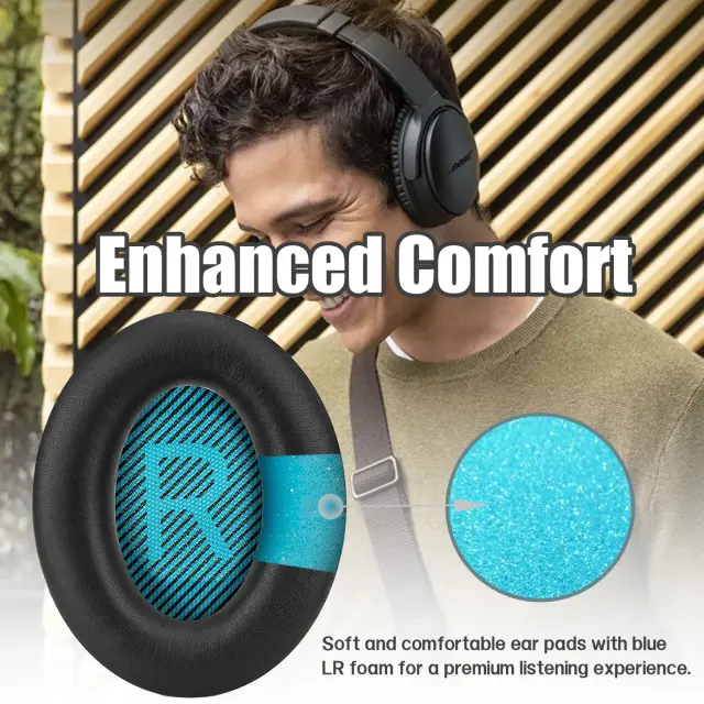 Izboljšano udobje: mehke in udobne ušesne blazinice z modro LR peno za vrhunsko izkušnjo poslušanja.