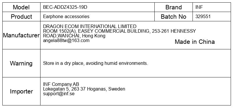 Podatki o proizvajalcu vključujejo informacije (naziv, naslov, državo in elektronski naslov) povezane s proizvajalcem izdelka.