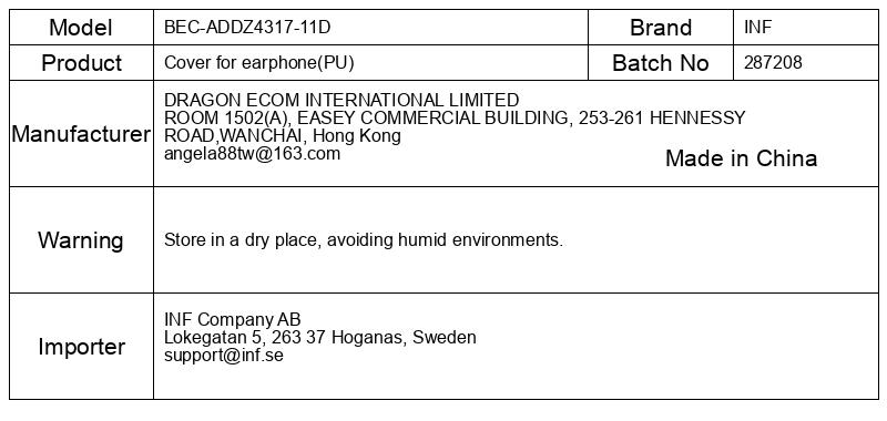 Podatki o proizvajalcu vključujejo informacije (naziv, naslov, državo in elektronski naslov) povezane s proizvajalcem izdelka.