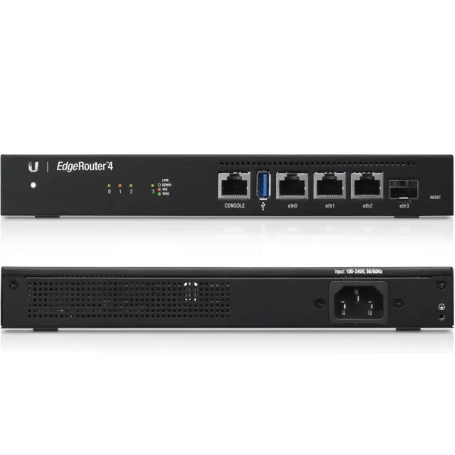 Ubiquiti Networks Edgerouter 4. Vrsta vmesnika Ethernet: Gigabit Ethernet, Tehnologija ožičenja: 10/100/1000Base-T (X), Ethernet LAN, hitrost prenosa podatkov: 10,100,1000 MBIT/S. USB različica: 3.2 Gen 1 (3.1 Gen 1). Protokoli za upravljanje: UNMS, CLI, SNMP, Netflow, LLDP, NTP. Podprti varnostni algoritmi: IPSec, SNMP, SSH, VPN Podpora: IPsec Site-to-Site in oddaljeni dostop OpenVPN OpenVPN SITE-TO-THE IN STRAN IN DISCOMEST PPTP PPTP oddaljeni dostop .... Arhitektura procesorja: MIPS64, Procesorska frekvenca: 1000 MHz, pomnilnik, pomnilnik 1000 MHz Enota: EMMC
