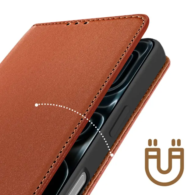 Pravo usnje za eleganten in trpežen videz. Vgrajena funkcija za podporo videa za prostoročno uporabo. Zapiranje na tečajih za optimalno zaščito zaslona. Neposreden dostop do vrat, kamer in gumbov.