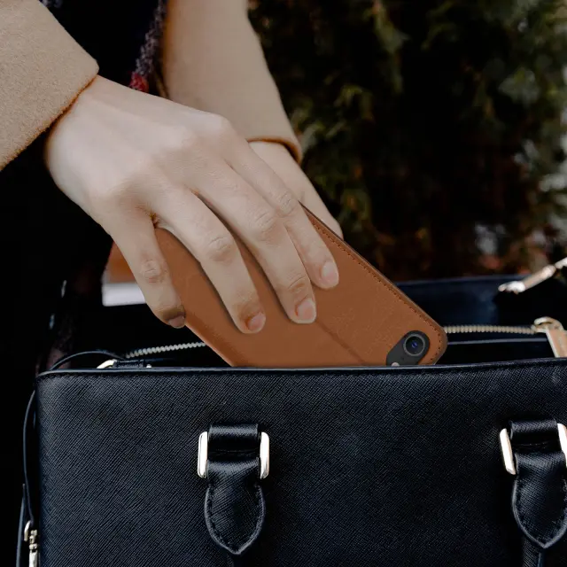 Etui za denarnico iz pravega usnja za Apple iPhone 7/8/SE 2020. Predali za kartice in stranski žep, integriran v zavihek, da bodo vaše kartice vedno pri roki. Funkcija vodoravnega stojala za prostoročno gledanje vaših fotografij / video posnetkov. Popoln udarec, zaščita proti praskam.