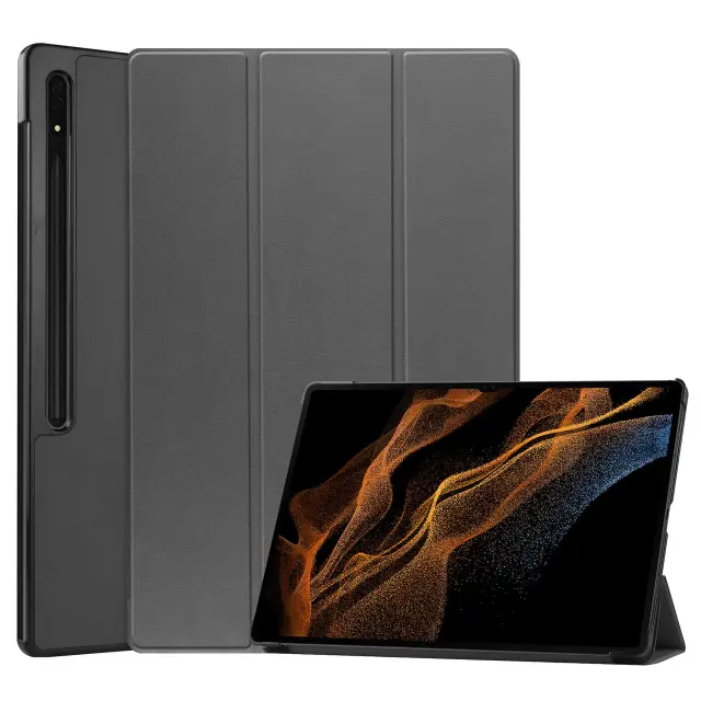 Usnjen ovitek za tablični računalnik s trikratnim stojalom za Samsung Galaxy Tab S8 Ultra s samodejnim prebujanjem/spanjem