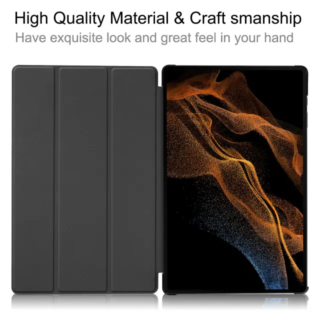 Usnjen ovitek za tablični računalnik s trikratnim stojalom za Samsung Galaxy Tab S8 Ultra s samodejnim prebujanjem/spanjem