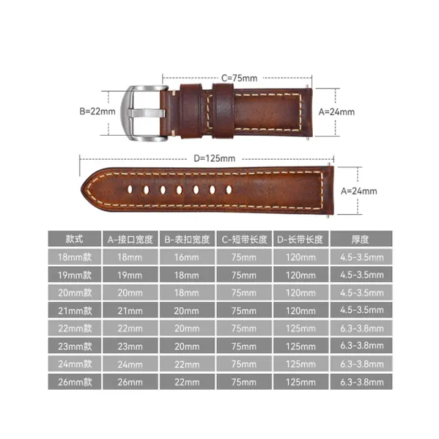 Vrhunsko italijansko usnje: Ta pašček za uro je izdelan iz visokokakovostnega italijanskega oljnega voska in ponuja razkošen občutek ter izrazit videz. Edinstven učinek spreminjanja barve usnja doda značaj in zagotavlja, da vsak pašček sčasoma razvije čudovito patino, zaradi česar je resnično individualen dodatek. Mehka tekstura zagotavlja izjemno udobje za celodnevno nošenje, robustna konstrukcija pa zagotavlja dolgo življenjsko dobo in odpornost proti vsakodnevni obrabi. Ta pašček izboljša stil vsake ure.