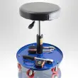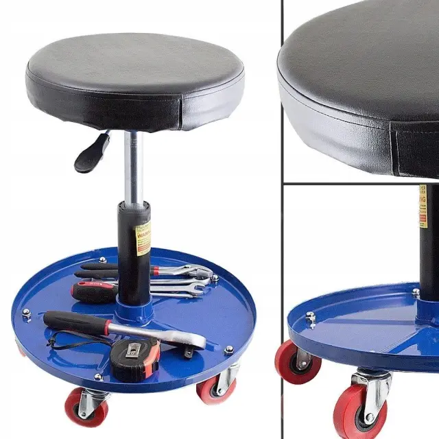 V podnožju je posoda za orodje in pripomočke, ki so potrebni pri delu. Delavniški stol je uporaben v vseh vrstah delavnic, bencinskih servisov in garaž. Vrtljivi sedež uporabniku omogoča udoben položaj med delom, pet vrtljivih valjev poveča mobilnost med delom. Trdna konstrukcija omogoča obremenitev do 135 kg, odlikuje jo privlačno razmerje med ceno in kakovostjo.