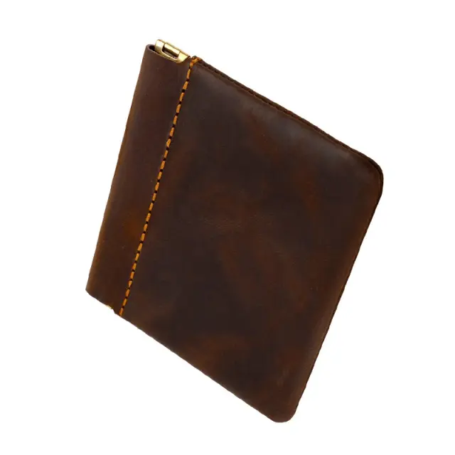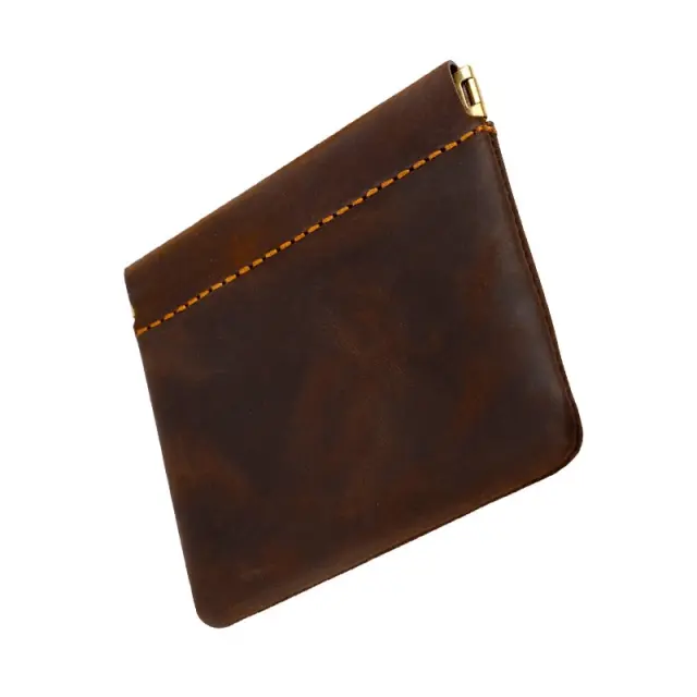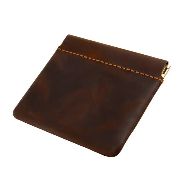 Usnjena denarnica za kovance in ključe - Kompaktna denarnica z zapiranjem na gumb