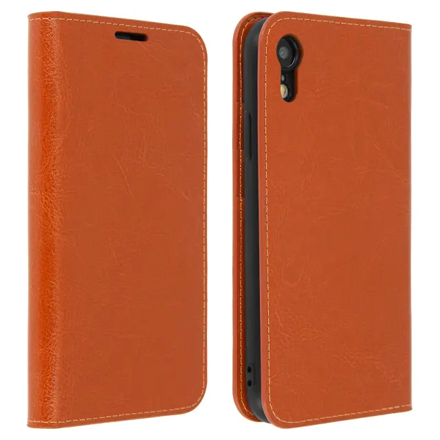 Folio etui za iPhone XR. Prevleka iz pravega usnja s šivanim zaključkom. Popolna zaščita pred udarci in praskami. Reže za držalo za kartice in stranski žep v notranji oblogi pokrova.