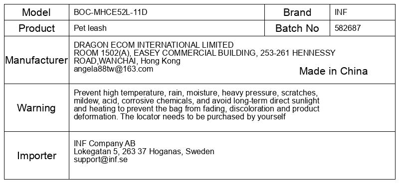 Preprečite visoke temperature, dež, vlago, močan pritisk, praske, plesen, kislino, jedke kemikalije in se izogibajte dolgotrajni neposredni sončni svetlobi in segrevanju, da preprečite bledenje vrečke, razbarvanje in deformacijo izdelka. Lokator morate kupiti sami