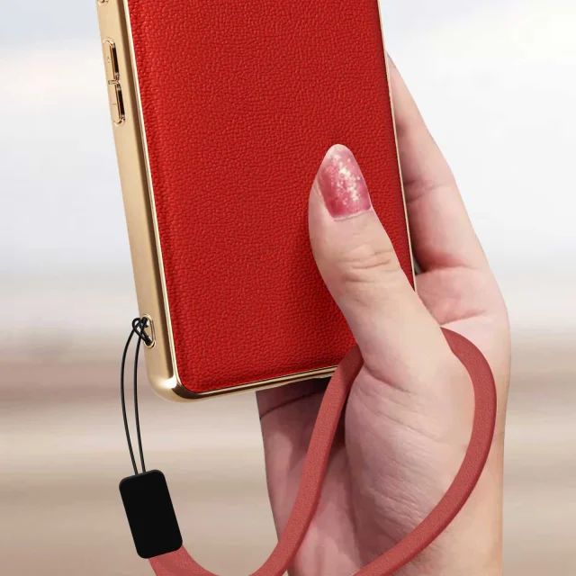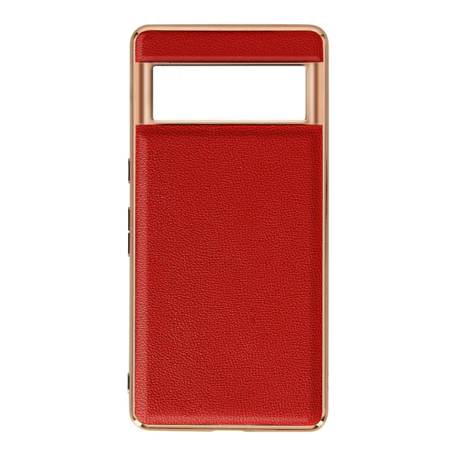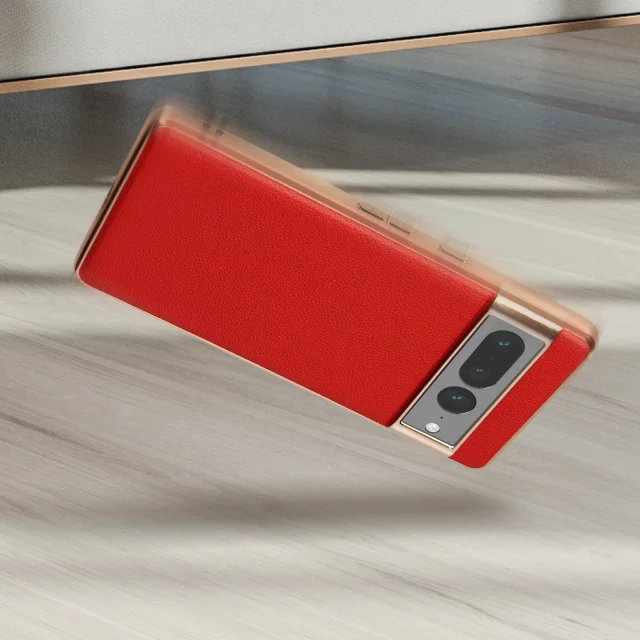 Usnjena torbica Google Pixel 7 Pro, odporna proti udarcem, kontura s kovinskim ucinkom - pravo usnje, rdeca