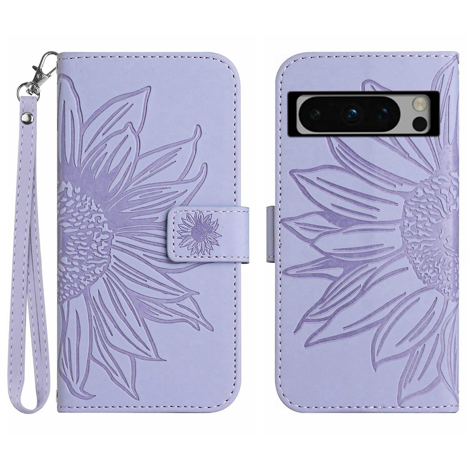 Usnjena torbica s stojalom denarnica za Google Pixel 8 Pro, ovitek za telefon z vtisnjenimi sončnicami in priročnim paščkom