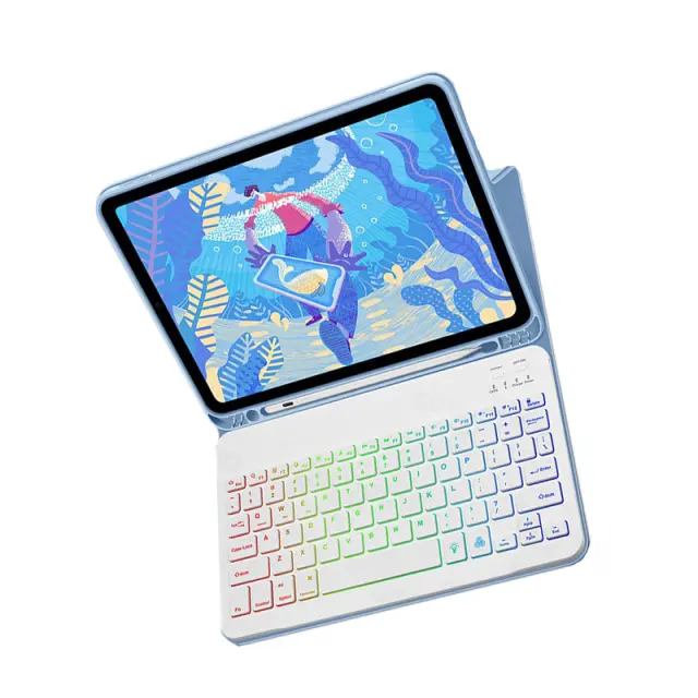 Usnjena torbica z RGB Bluetooth tipkovnico za iPad Blue iPad 10 10,9 palcev