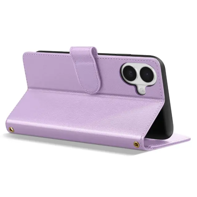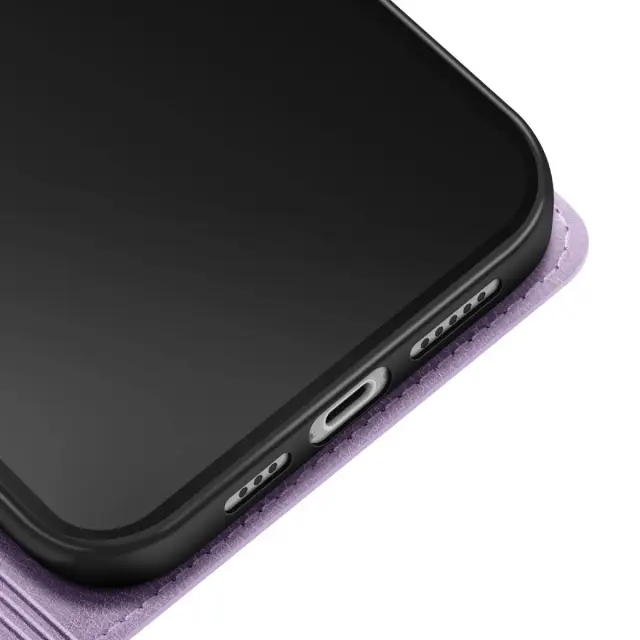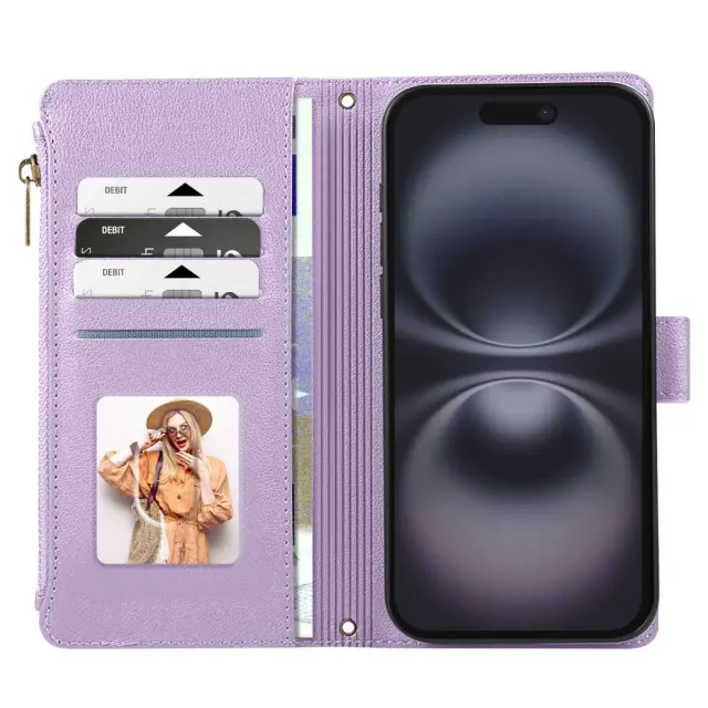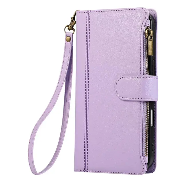 Usnjena torbica za iPhone 16 z zadrgo in odstranljivim paščkom za zapestje, Lavanda
