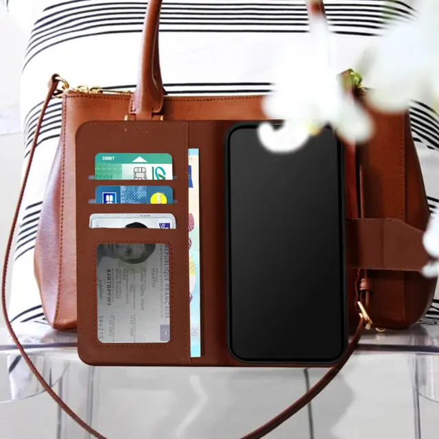 Ovitek za iPhone 14 iz vrhunskega usnja, ki šciti vaš mobilni telefon in ga oblece v eleganco. Etui s prostorom za shranjevanje kartice in stranskim žepom za bankovce. Cenite tudi njegovo loputo s funkcijo horizontalne video podpore.