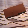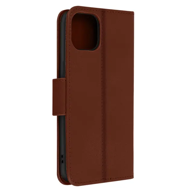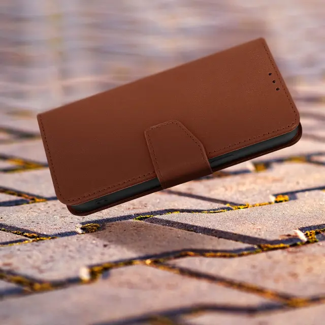 Usnjena torbica za iPhone 14, vrhunska kakovost, šivi in magnetni zavihek - rjava