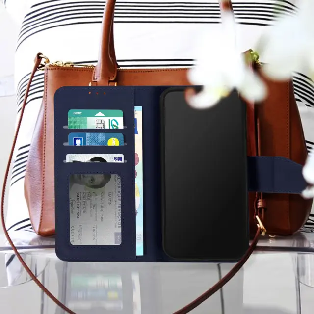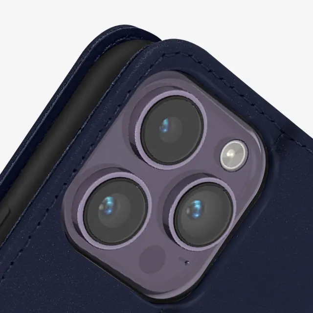 Usnjena torbica za iPhone 14 Pro Max, vrhunska kakovost, šivi in magnetni zavihek - modra