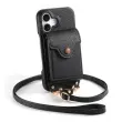 Usnjena torbica za iPhone z ogledalom in držalom za kartice - črna Model 3