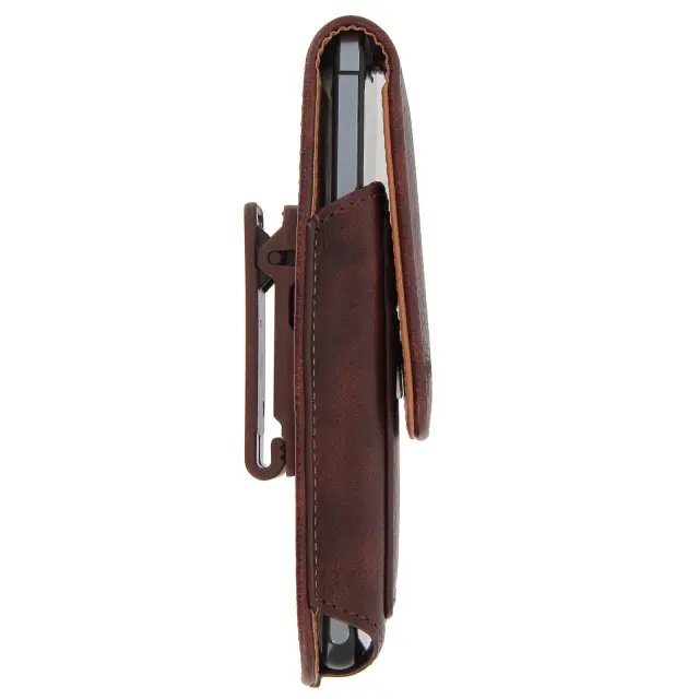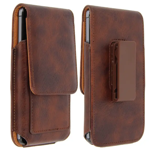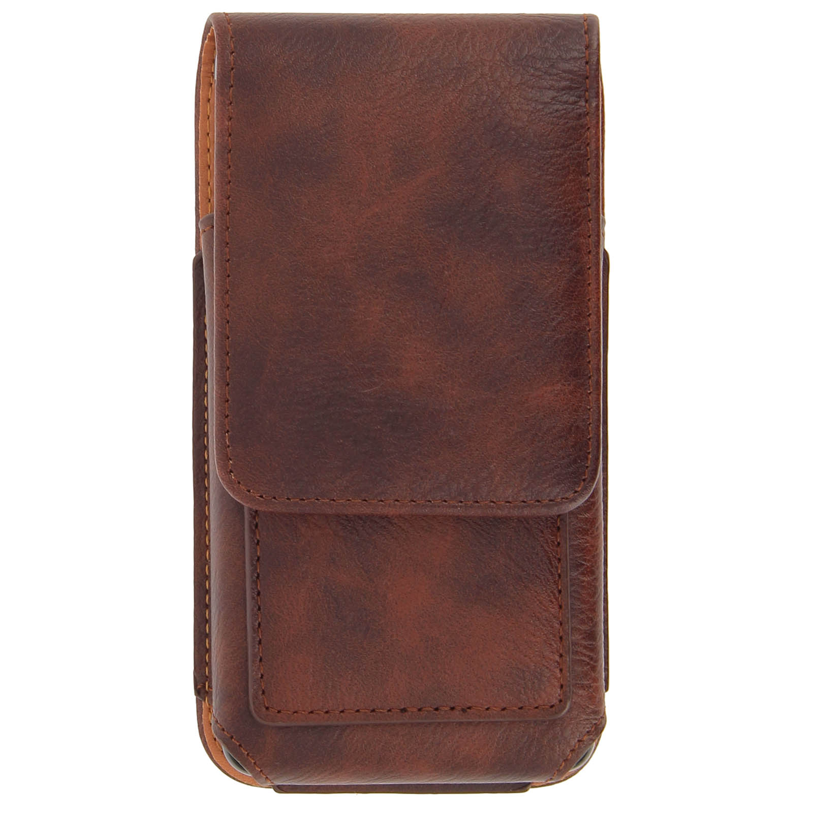 Usnjena torbica za pas, navpična, usnjena velikost pametnega telefona L - rjava