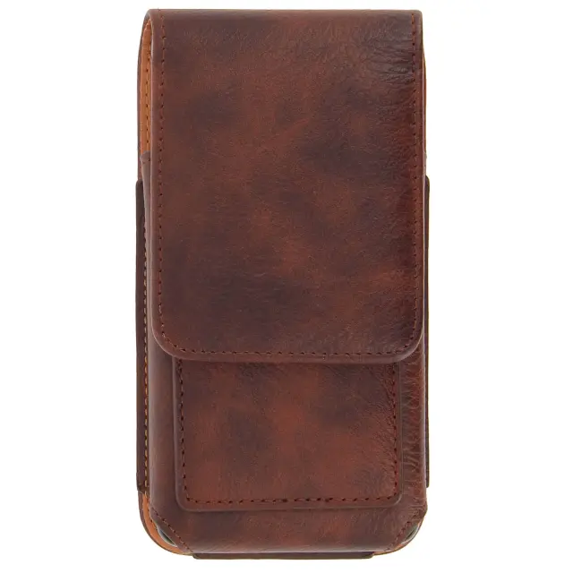 Prevleka za pas iz šivanega usnja z navpično zavihkom. Enostavno shranite svoje kartice in vstopnice. Enostavna namestitev zahvaljujoč 360° vrtljivi sponki za pas. Združljiv s pametnim telefonom do največje velikosti 140 x 70 mm.