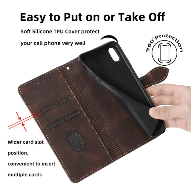 Celovita zaščita: Kombinacija PU usnja in trpežnega notranjega ohišja iz TPU zagotavlja robustno zaščito pred praskami, udarci in vsakodnevno obrabo ter ohranja vaš telefon varen.