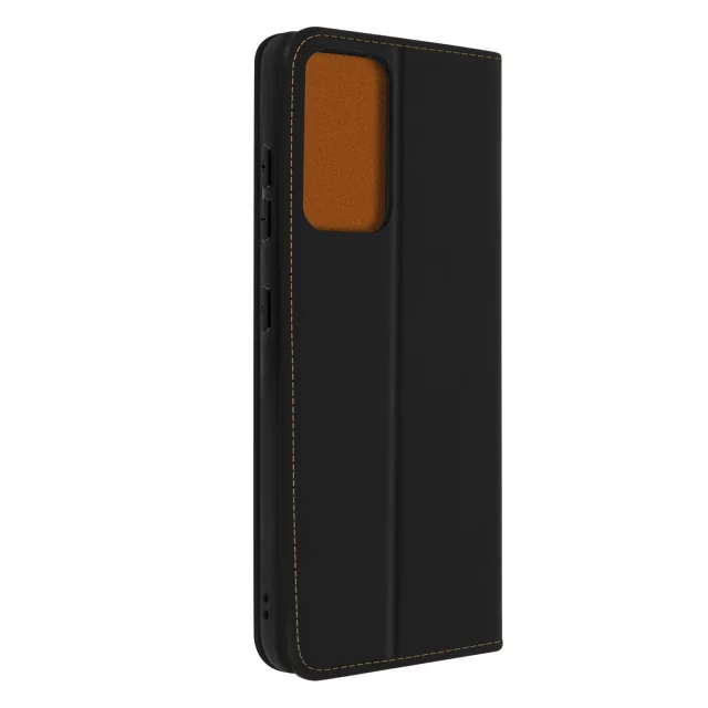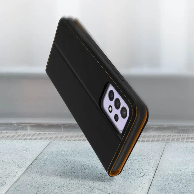 Usnjena torbica za Samsung Galaxy A72, magnetni preklop, funkcija stojala - crna