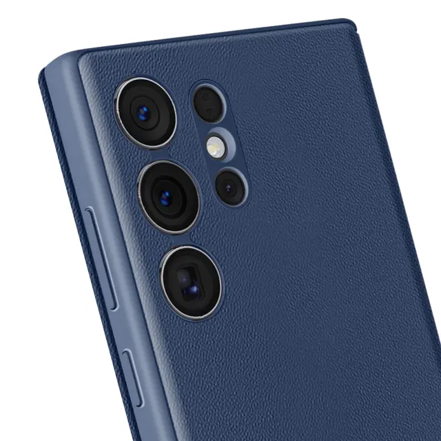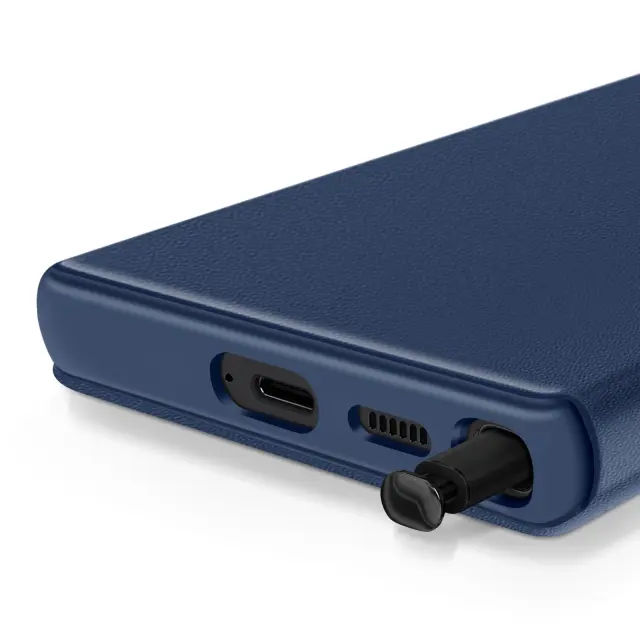 Usnjeni etui za Galaxy S23 Ultra Display Window Card Holder, Modra noč