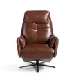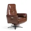 Usnjeni vrtljivi fotelj sprostite mehanizme model 5056 Angel Cerdá S.L. Sodobno oblikovan vrtljiv fotelj, oblazinjen v 1,5 mm debelo goveje usnje čokoladno rjave barve. Trendovski fotelj, popoln za vaš prostor za počitek in sprostitev, z notranjo strukturo iz borovega lesa, polnjeno s poliuretansko peno gostote 20 kg/m3, in dvema neodvisnima električnima sprostitvenima mehanizmoma. Njegova konstrukcija iz trdnih jeklenih nog, pobarvanih v črni epoksidni barvi, bo prinesla tisti pridih avantgarde in elegance, ki ga iščete za svoj dom. Popolna kombinacija oblikovanja in udobja. - STIL: Ta vrtljivi fotelj s sprostitvenimi mehanizmi, oblazinjen v eko usnje čokoladne barve, bo poskrbel za eleganten in prefinjen dotik, ki ga iščete za svoj dom in je zvest najnovejšim trendom na področju dekoracije. - Vsestranski in funkcionalen: njegova zasnova omogoča, da se prilega tako vaši dnevni sobi ali jedilnici kot tudi bralnemu kotičku ali spalnici. - KAKOVOST: Vsi naši fotelji so izdelani iz najkakovostnejših materialov, kar zagotavlja dolgotrajno in funkcionalno pohištvo. - DEKORACIJA: Kombinacija med usnjenim oblazinjenjem in črnim jeklenim podnožjem bo v vaši dnevni sobi ustvarila drugačno in osebno vzdušje, kot ga iščete. - UDOBJE: Zahvaljujoč izvirni ovojni zasnovi in velikosti sedeža, napolnjenega z 20 kg/m3 poliuretanske pene, ter dvema neodvisnima električnima sproščujočima mehanizmoma boste imeli največje udobje, ne da bi pri tem zapustili najvišje trende