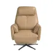 Usnjeni vrtljivi fotelj sprostite mehanizme model 5086 Angel Cerdá S.L. Vrtljivi fotelj sodobne zasnove, oblazinjen v usnje govejega izvora debeline 1,5 mm v peščeni barvi. Trendovski fotelj, ki je popoln za vaš prostor za počitek in sprostitev, z notranjo strukturo iz borovega lesa, polnjeno s poliuretansko peno gostote 20 kg/m3, in dvema neodvisnima električnima sprostitvenima mehanizmoma. Njegova konstrukcija iz črno obarvanih nog iz nerjavečega jekla bo poskrbela za tisti pridih avantgarde in elegance, ki ga iščete za svoj dom. Vsebuje vhod USB za polnjenje mobilnih naprav, s čimer vam omogoča, da jih imate vedno pri roki. Popolna kombinacija oblikovanja in udobja. - STIL: Ta vrtljivi fotelj s sprostitvenimi mehanizmi, oblazinjen v usnje peščene barve, bo poskrbel za eleganten in prefinjen dotik, ki ga iščete za svoj dom in je zvest najnovejšim trendom na področju dekoracije. - Vsestranski in funkcionalen: Njegova zasnova omogoča, da se prilega tako dnevni sobi ali jedilnici kot tudi bralnemu kotičku in spalnici. - KAKOVOST: Vsi naši fotelji so izdelani iz najkakovostnejših materialov, kar zagotavlja trajno in funkcionalno pohištvo. - DEKORACIJA: Kombinacija med usnjenim oblazinjenjem in črnim jeklenim podnožjem bo v vaši dnevni sobi ustvarila drugačno in osebno vzdušje, kot ga iščete. - UDOBJE: Zahvaljujoč izvirni ovojni zasnovi in velikosti sedeža, napolnjenega s poliuretansko peno s prostornino 20 kg/m3, ter dvema neodvisnima električnima sproščujočima mehanizmoma boste imeli največje udobje, pri čemer ne boste zapustili najvišjega trenda.