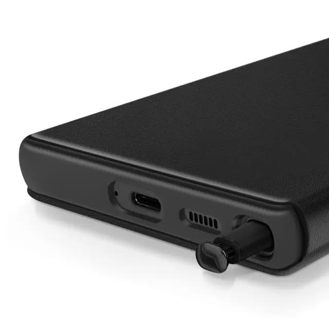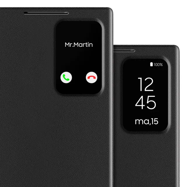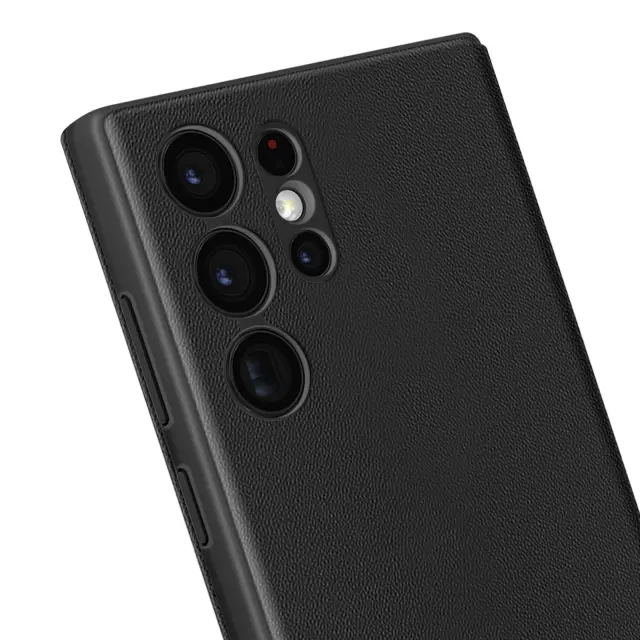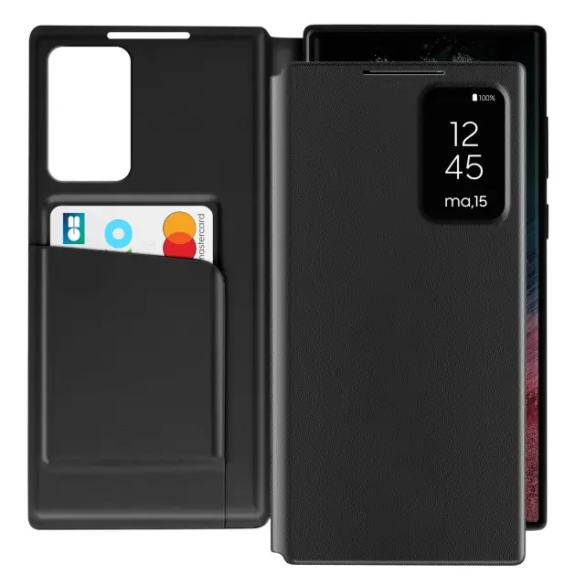 Usnjeno ohišje za Galaxy S22 Ultra Display Window Card Holder, Črna