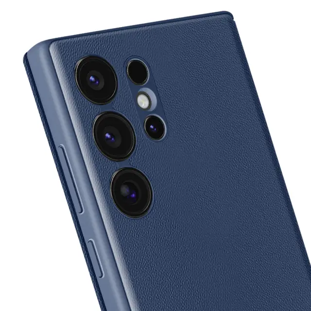 Usnjeno ohišje za Galaxy S24 Ultra Display Okenski ovitek za kartice, Modra noč