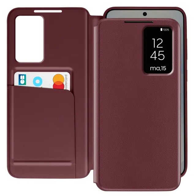 Usnjeno ohišje za Galaxy S25 Display Window Card Holder, Bordeaux