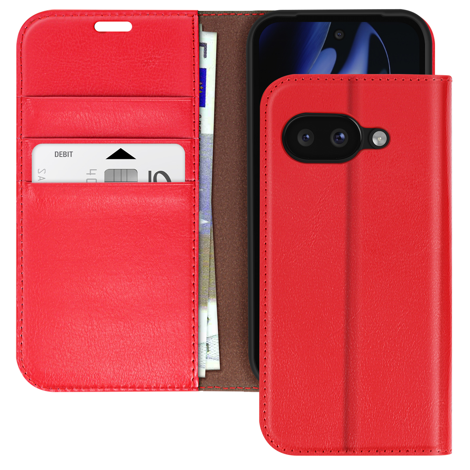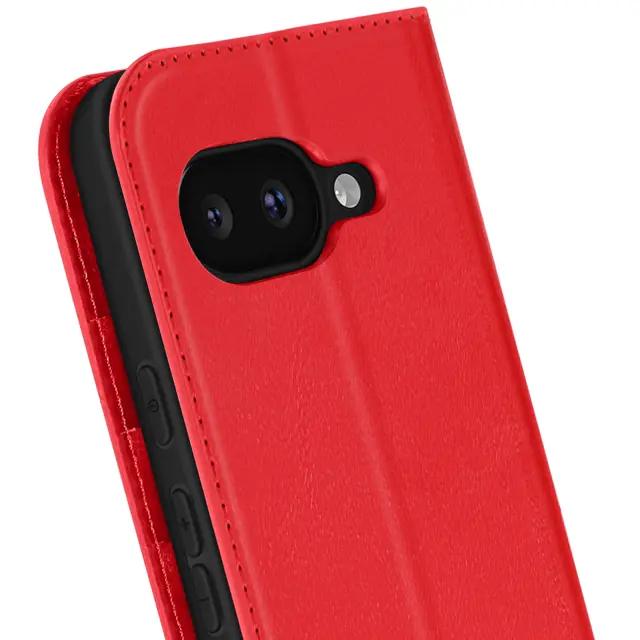 Usnjeno ohišje za Google Pixel 9a Denarnica in držalo za videoposnetke, Rdeča