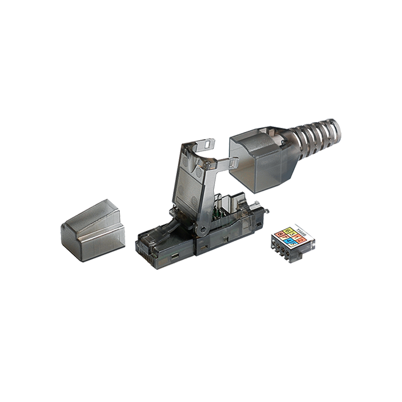 UTP konektor RJ45 CAT6A. Primeren za montažo brez orodja. Primeren za finožične in trde vodnike AWG 24-26, premera do 9 mm.