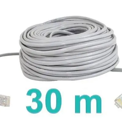 SPECIFIKACIJA – zunanji ovoj: PVC; zaključek: vtiči RJ45 tovarniško zaprti; dolžina čepa: 20 mm; dolžina kabla: 30m; teža: 560 g.