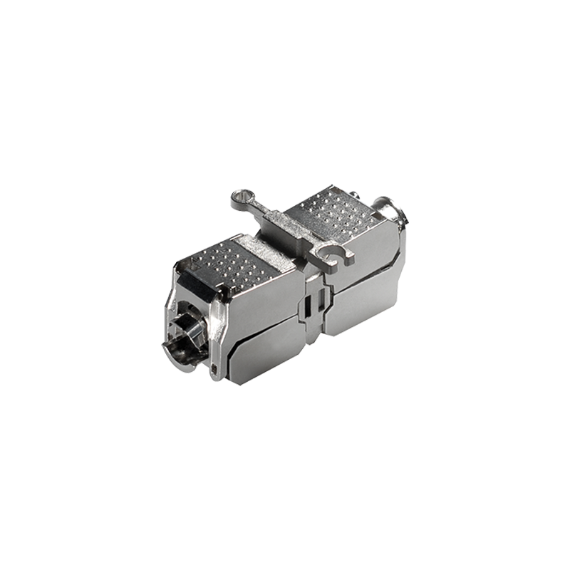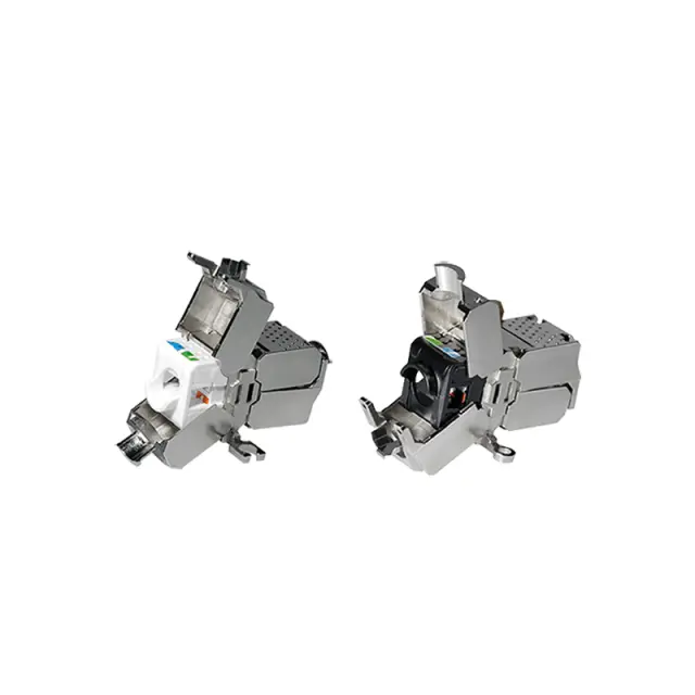 Toolless spojka za UTP kabel CAT6A z maksimalno pasovno širino 500 MHz. Primerna za vse vrste kabla AWG 22-26, debeline do 9mm. Priložena 2x vezica in 2x alu folija. Dimenzije spojke: 54 x 24 x 17 mm.