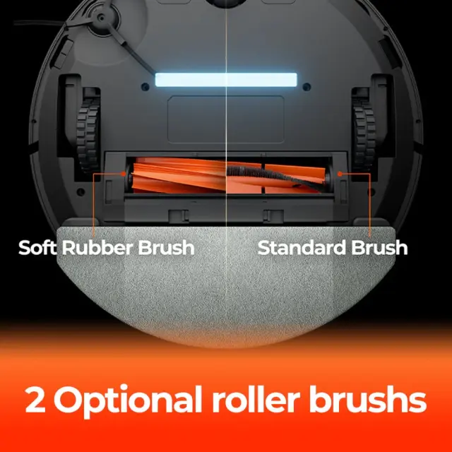 Poleg standardne krtače je opremljena tudi s silikonsko valjčno krtačo. Silikonska valjčna krtača lahko zlahka posesa lase, reši problem zapletanja, glavna krtača je blizu tal, lahko lebdi gor in dol s tlemi, naleti na razpoke v tleh, lahko globoko odstrani skriti prah in mehka gumijasta krtača lahko zaščitite talne ploščice, primerne za različne talne materiale