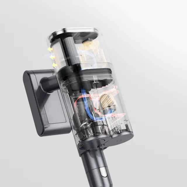 Filter na desni strani in shranjevanje prahu na levi strani, da se izogne zapletom las in blokadam prahu, ki jih povzroča dolgotrajno mešanje sistema za filtriranje s prahom, kar zmanjšuje sesalno moč in vpliva na učinek čiščenja.