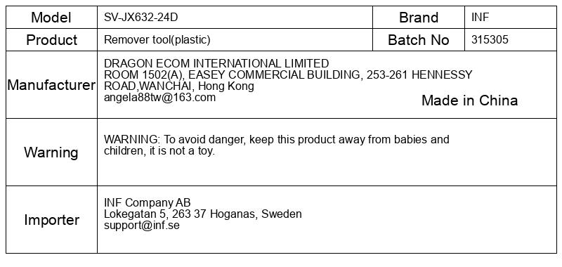 OPOZORILO: Da bi se izognili nevarnosti, hranite ta izdelek stran od dojenčkov in otrok, ni igrača.