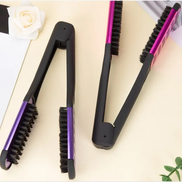 V-Oblikovan Glavnik za Ravnanje Las s Ščetinami - Toplotno Odporna Krtača Blue