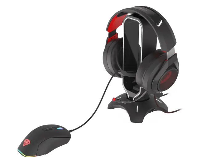 GENESIS VANAD 500 mouse bungee fleksibilna roka, protizdrsne noge, RGB LED osvetlitev, 2x USB vhod, držalo za kabel miške in slušalke črno