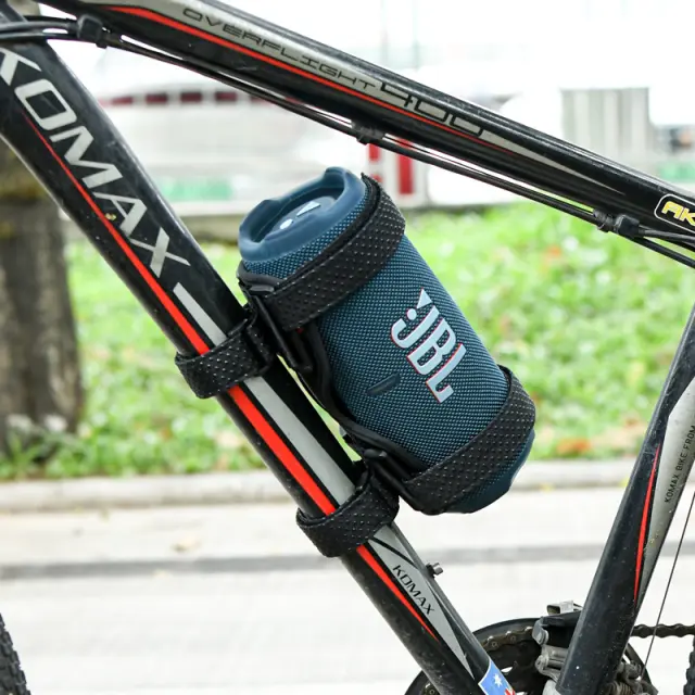 Univerzalna združljivost: Ta nosilec za kolo je združljiv s široko paleto cilindričnih in kvadratnih zvočnikov Bluetooth, vključno s priljubljenimi modeli JBL, UE, Beats in drugih. Prilega se zvočnikom različnih premerov in oblik.