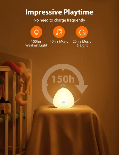 Svetloba + glasba se lahko neprekinjeno predvaja do 20 ur, največja življenjska doba baterije čiste glasbe pa je več kot 40 ur.