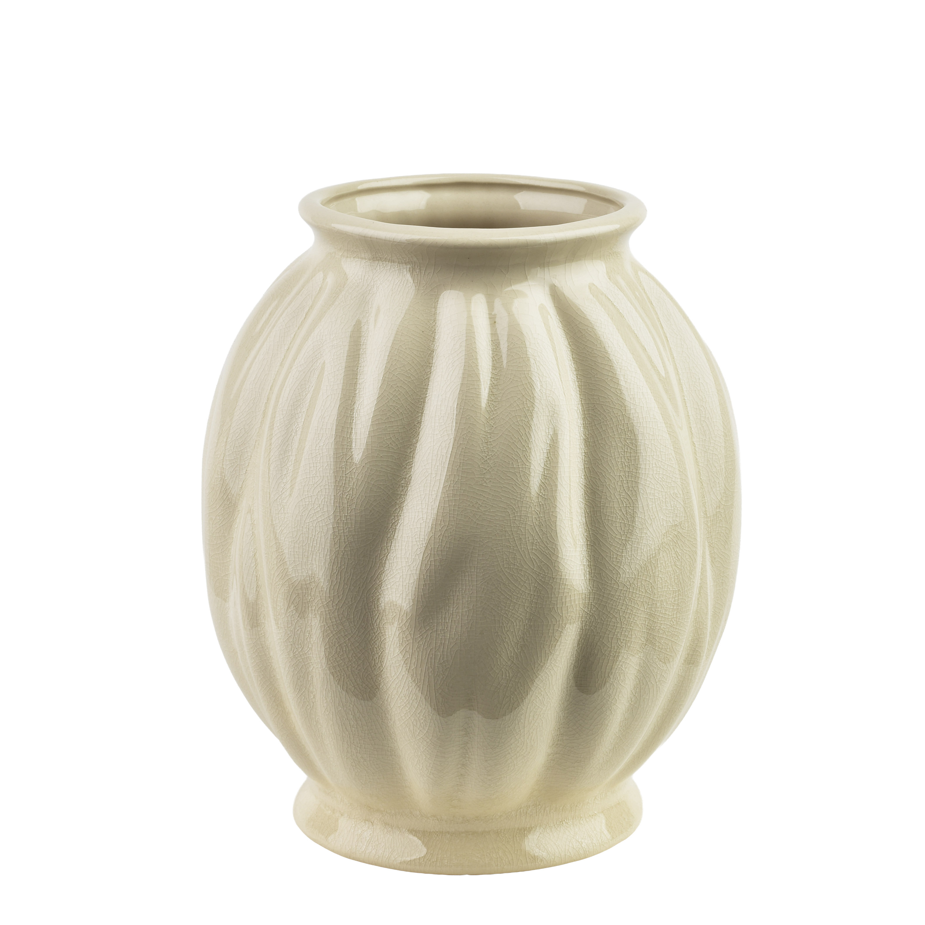 Vaza MANON iz keramike, dimenzij 11 x 18 x 22 cm, v nežni bež barvi predstavlja prefinjen in vsestranski dekorativni element za dom ali pisarno. Unikatni razpokani vzorec in naravna tekstura površine dajeta vazi karakter ter jo naredita vidno tako v modernih kot klasičnih ambientih. Ergonomična oblika zagotavlja stabilnost, notranji premer vratu približno 9,5 cm pa omogoča enostavno aranžiranje srednje velikih šopkov svežega ali umetnega cvetja.