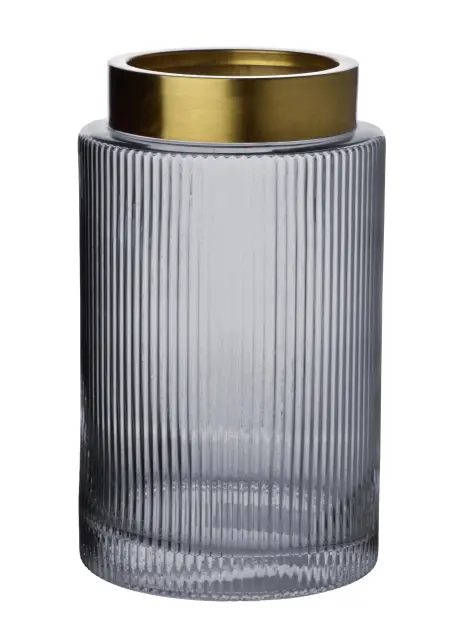 Izdelana iz kakovostnega stekla prvega razreda in pakirana v robustno rjavo škatlo, zagotavlja varno dostavo in dolgo življenjsko dobo. Njena nevtralna siva barva omogoča enostavno kombiniranje z ostalimi dodatki in barvnimi shemami, kar vam omogoča, da hitro osvežite videz dnevne sobe, jedilnice ali pisarne.