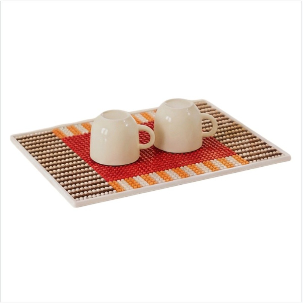 Protizdrsna stabilnost: Predstavljajte si zaposlen bar ali kuhinjo v vrhuncu priprave pijač in jedi: mehka gumijasta struktura podloge nudi zanesljivo protizdrsno površino, teksturirana zgornja plast in robni oprijem zmanjšujeta premikanje kozarcev, steklenic in pripomočkov. Ta podloga ohranja predmete stabilne tudi na mokrih ali penastih površinah, hkrati pa ščiti pult pred praskami in poškodbami, kar olajša delo v gospodinjstvu, restavraciji ali baru.