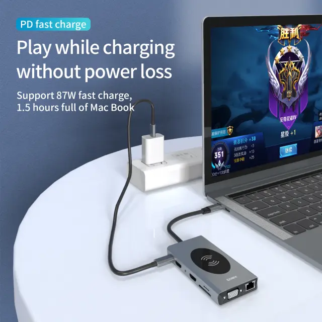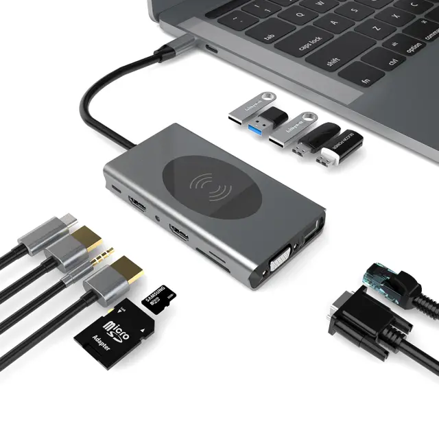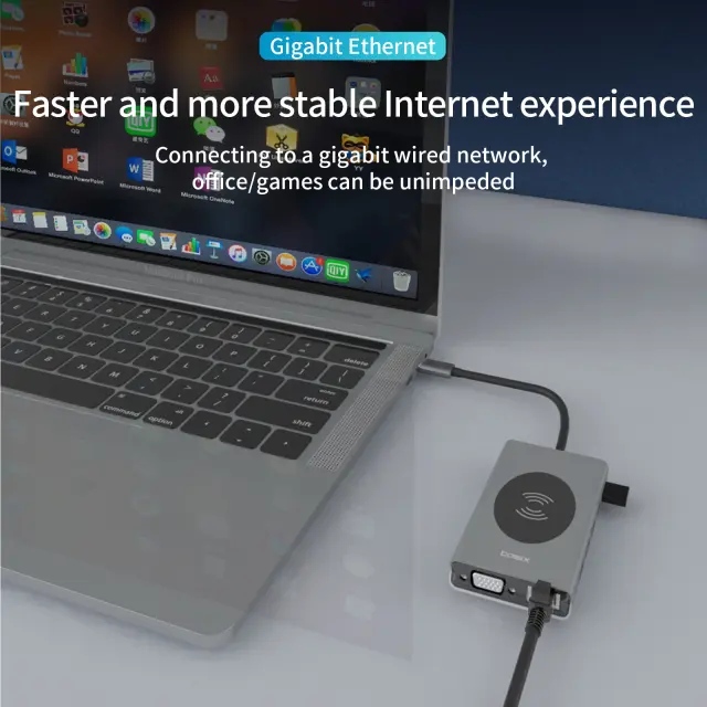 Univerzalna združljivost: Zasnovano za delovanje s široko paleto naprav, je to zvezdišče združljivo z računalniki Macbook, prenosniki, tabličnimi računalniki in pametnimi telefoni z vrati USB-C. Njegova funkcija »plug-and-play« zagotavlja enostavno povezljivost brez potrebe po dodatnih gonilnikih ali programski opremi.