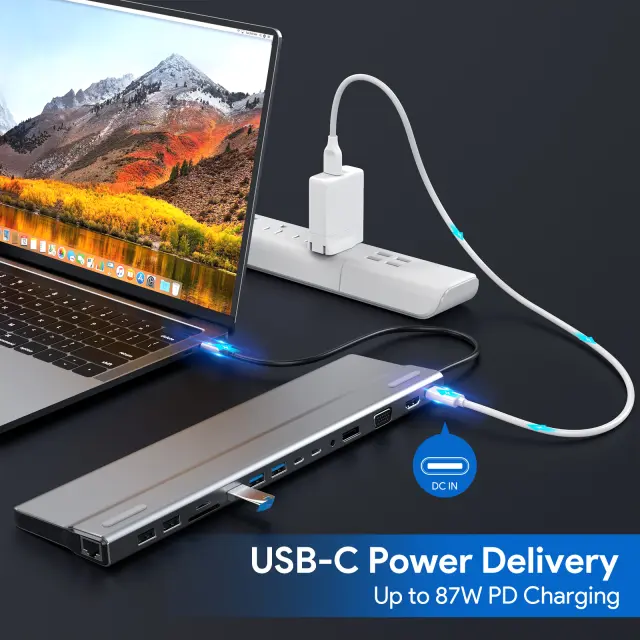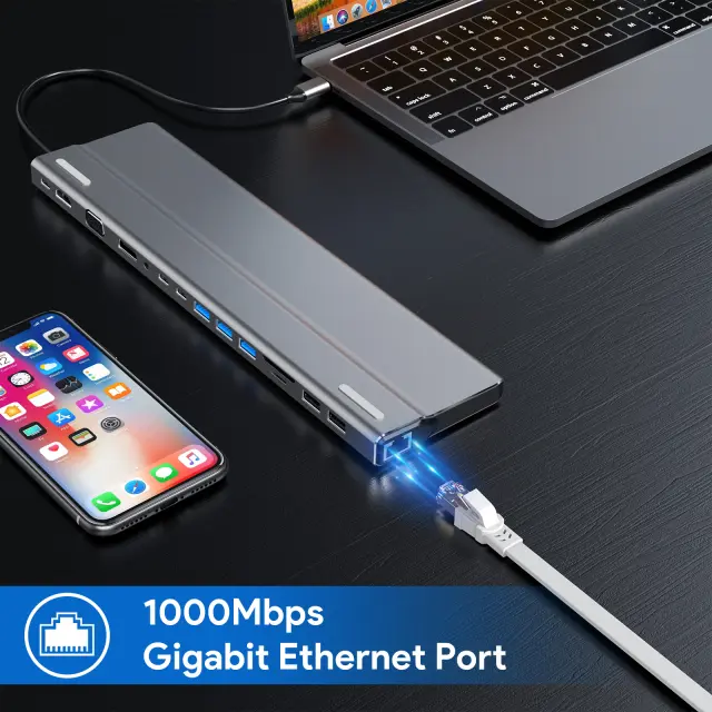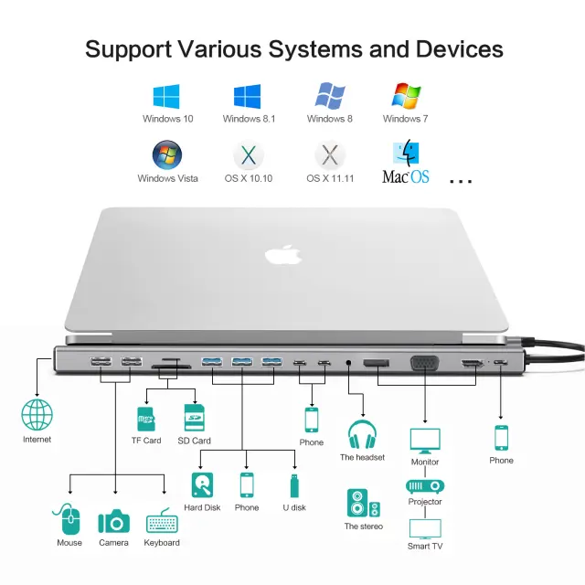 Univerzalna združljivost: Zasnovano za vsestranskost, je to zvezdišče USB-C združljivo s široko paleto naprav, vključno s prenosniki, tabličnimi računalniki in pametnimi telefoni. Njegova funkcija plug-and-play zagotavlja enostavno povezljivost brez potrebe po dodatnih gonilnikih.