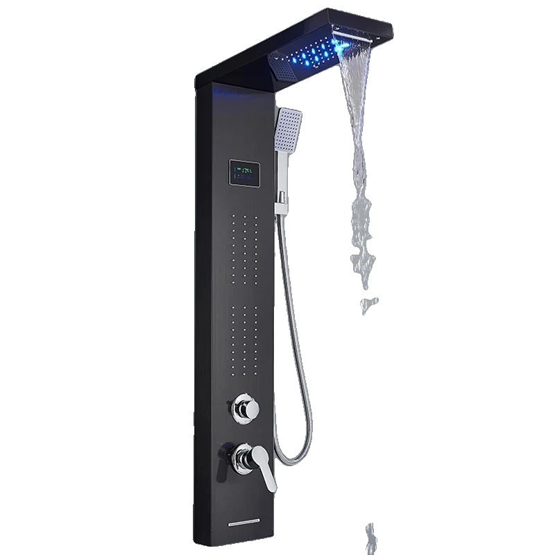 Večfunkcijski tuš panel, nadzor hladne in tople vode, brušeno nerjaveče jeklo, črna-F-8011